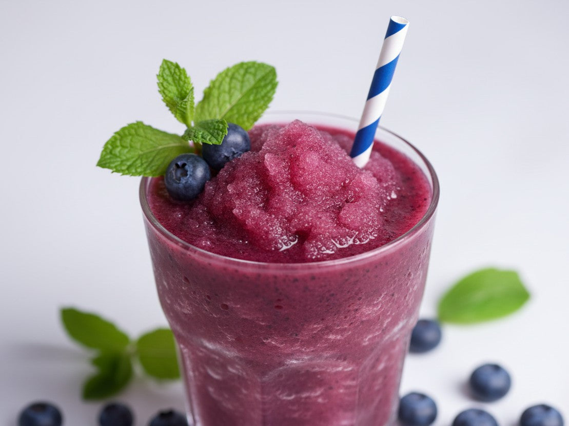 - Licúa hielo + agua + DfsMix (y endulzante si quieres) hasta obtener textura de raspado.